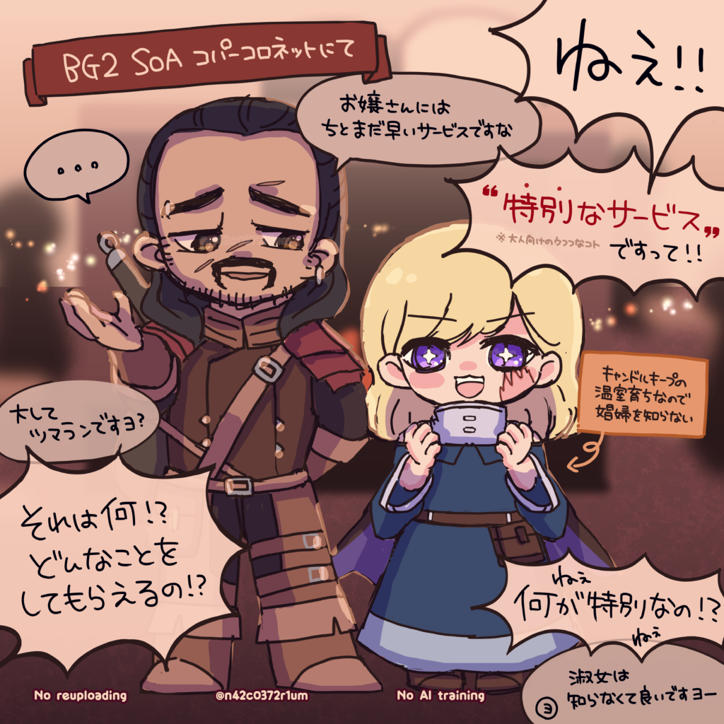 ヨシモ+ヨシモと仲良くする世界線の弊ベハルの子ノア。ノアはWIS14あるのでお馬鹿さんではないんだけど、ちょっと世に疎い所があるのでヨシモがカバーしてたらいいなぁと思ってます。